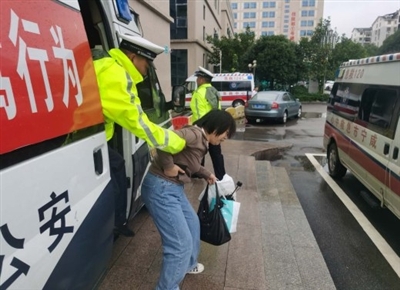 16日8时许,在城区金桂路与银泉大道十字路口人行道上,一女子突发疾病,呼吸困难。正在路口执勤的咸安交警大队民警迅速将女子送往市中心医院进行救治。因送医及时,女子暂无大碍。(记者 方达星 通讯员 吴振宇)