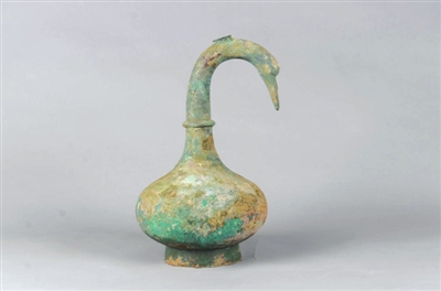 记者从三门峡市文物考古研究所获悉,经中国科学院大学研究人员取样检测,鹅首曲颈青铜壶内的液体为西汉早期的古酒,并与湖南长沙马王堆汉墓出土的医学方书《五十二病方》中的相关记载颇为相符,是可以止血消炎的药酒。
