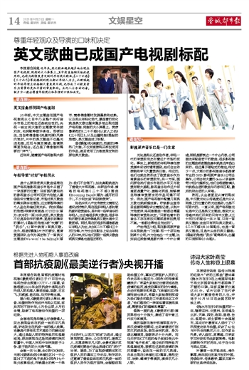 本报综合消息 近年来,英文歌曲越来越多地出现在国产电视剧、网剧的大小屏幕上,其中有直接购买版权使用的,也有为剧情度身定制的原创英文歌曲。《二十不惑》《三十而已》等热播剧的观众都以年轻人为主,而新崛起的年轻导演主动接触大量美英日剧,也形成了以欧美音乐为背景的更加丰富的审美取向。业内人士告诉记者,制片方一般会尊重年轻观众和导演的口味和决定。