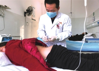 9月23日,记者前往咸安区贺胜桥镇卫生院采访。刚走进该院住院部时,便看见一位男医生正在不停地忙碌着。他,就是该院全科医生、住院部主任——李大怀。