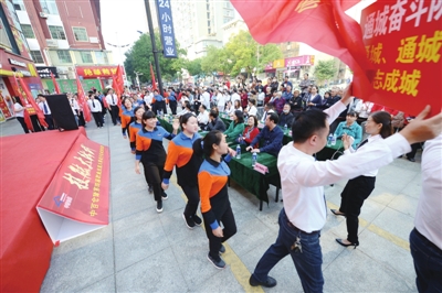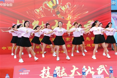 “无畏竞争迎挑战 奋起一跃更精彩”“乘风破浪 勇立潮头 激情无限 追梦扬威”……门店展示环节,咸宁飞扬队、咸安追梦队、博仁奋进队、赤壁光速队、嘉鱼飞翔队等9家门店的参赛队员通过口号、舞蹈等方式展示出团队积极向上的精神风貌,赢得观众热烈掌声。