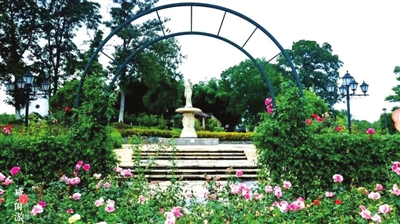 漫步园中,玫瑰迷宫、法式经典玫瑰园、永恒教堂、爱情花廊、藤蔓花园……伴着满园艳丽春光,大家一步一景,漫步游玩,置身芳香花海之中流连忘返。