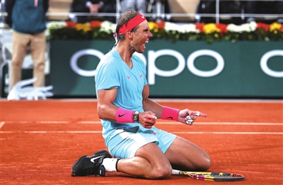 本报综合消息 北京时间昨晨,2020年法国网球公开赛落下大幕。在压轴大戏男单决赛中,纳达尔直落三盘且首盘送“蛋”击败了德约科维奇,第13次捧起了火枪手杯。这也是纳达尔在罗兰·加洛斯的第100场单打胜利,这使他以20个大满贯冠军头衔追平了费德勒,两人目前并列成为男子大满贯头衔数量的领跑者。