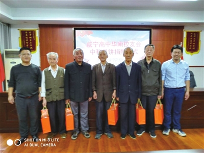 据悉,咸宁高中华南校友会是由在广东深圳工作的李启柱等学子牵头发起,今年9月5日成立。目前校友会会员已有300多人。今年“两节”来临之际,该会咸宁高中学子为表达对母校一片感恩、感激之情,专门购买了60盒中秋月饼和印制了60张写有“情满中秋,拜谢师恩”的中秋节快乐卡片赠送给母校老师。