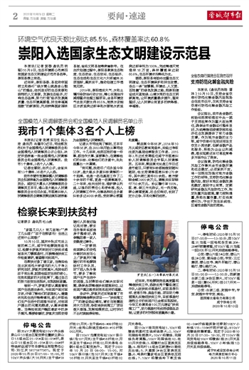 崇阳入选国家生态文明建设示范县