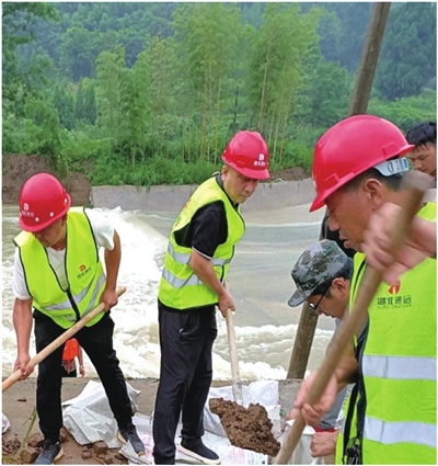 ■抗击洪水,轻伤不下火线 3月份,随着抗疫取得阶段性胜利,咸宁有序复工复产。由于肩负崇阳县内绝大部分交通基础设施建设任务,通远集团为确保2020年交通项目建设进度,掀起“百日大战”建设热潮。然而6月底至7月上旬,受持续暴雨影响,崇阳境内交通要道险情频发,汪正榜带领通远人再次投身到抗洪抢险的“战斗”中。