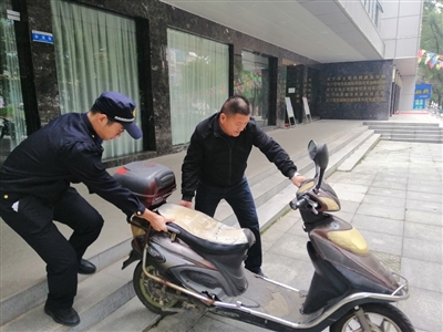 “我办下事,马上就走。”“您这样停车影响其他人通行,这旁边就是停车线。”10月20日上午9时30分许,在温泉城区温泉路购物公园数码港门口,一位中年男子将电动车随意停放在人行道上,准备去办事,市城管执法委城区机动车停车服务中心执法队员赶紧迎上来劝阻,让其将车辆规范停至停车线内。