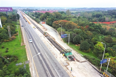 昨日,记者在市区桂乡大道大修工程现场看到,部分路段实行半幅车道封闭,施工人员正加紧施工中。
