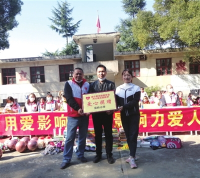 本报讯(记者 王奇峰 实习生 赵锐)11月13日,咸宁阳光助困协会联合“丹行线贫困助学”来到通山县洪港镇宣岭小学开展爱心捐赠活动,为这里的师生送上体育器材和课外书籍。