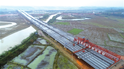 11月19日,市区旗鼓大道北延段官埠大桥最后一片箱梁架设完成,标志着旗鼓大道北延段全线通车的重要节点已彻底打通。
