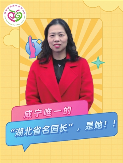 近日,在长江教育研究院联合《新班主任》编辑部、《湖北教育》编辑部、爱立方培训学校共同主办的首届“湖北省名园长”评选活动中,她又被评为“湖北省名园长”。成为我市唯一获此殊荣的园长。无论哪个角色,她都演绎生动精彩。她就是咸宁市直属机关幼儿园园长、党支部书记朱红梅。
