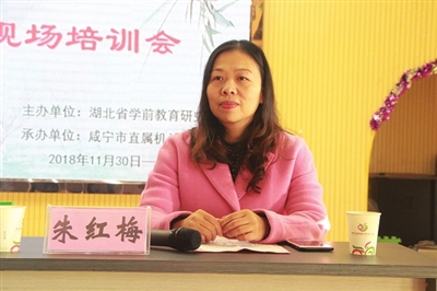 勇挑重担 葆党员模范作用 近些年来,朱红梅除承担园内的工作,还多次参与省、市学前教育相关工作:2017年她被聘为咸宁市督学,2019年被聘为湖北省督学,2020年成立了朱红梅名师工作室。2013年被省教育厅聘为“农村教师素质提高工程”培训授课教师,承担了600名学员的《幼儿园语言教育活动》授课任务,风趣的讲解,实用的方法受到学员好评。2014年、2016年她作为湖北省教育厅选派的评估组成员承担了湖北省示范性幼儿园的评估工作。在全省的课题和园本教研会议上承担经验交流任务,多次承担国培送教下乡讲座和指导的工作,充分发挥了示范引领作用。