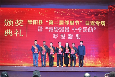11月20日,崇阳县第二届邻里节白霓专场暨首届“霓善霓美 十个最美”评选活动颁奖典礼在白霓镇洪泉村举行,乡亲邻里们喜聚一堂,其乐融融。