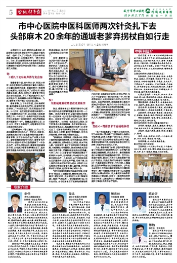 市中心医院中医科医师两次针灸扎下去 头部麻木20余年的通城老爹弃拐杖自如行走