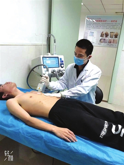 他表示,冬季,多数患者身上白癜风都处于“休眠”状态,此时,恰恰正是治疗白癜风的最佳时机。目前,针对白癜风,湿疹,银屑病等难治性皮肤病,咸宁市第一人民医院皮肤科专门引进准分子双波长(308,365)激光治疗仪,该激光属窄谱紫外线治疗,紫外线可刺激皮肤,增加黑色素的生成,从而改善局部肤色变浅的情况,一般1-2疗程治疗即可得到明显改善,有需求的患者可前往咨询就诊。