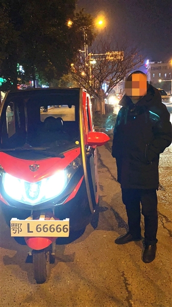 11月27日晚,咸安公安分局交警大队在市区长安大道开展交通秩序整治时,查获一辆悬挂假牌的三轮车。驾驶员为了引人注目,竟然用泡沫板打印了一个五个6的假车牌。民警现场对驾驶员进行了批评教育,并督促他自行拆除并损毁了假牌。