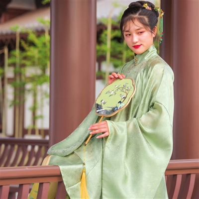 “秦统一中国以后,就建立了衣冠制度。秦汉之初的服饰凝重、典雅;唐代服饰款式瑰丽多姿,大气飘逸又华丽绚烂,很多妹子入手的第一件汉服可能就是唐代汉服的代表——齐胸襦裙。”周惠君说。