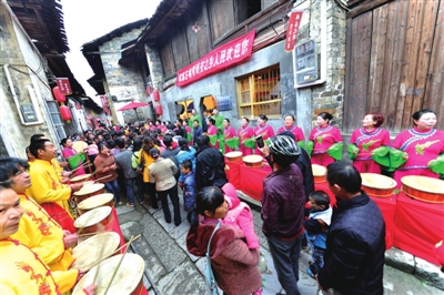 继续前行,来到羊楼洞村,村民房屋被统一改造成白色的墙、青色的屋檐,四周干净整洁。村前广场上,一群老人们拉着二胡、哼着小调,外地游客在这里合影拍照。这里是万里茶道的源头,伫立的石刻述说着古镇的百年茶韵。