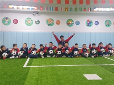 今年9月,市交通实验幼儿园,在中小班征集足球爱好者,组建足球队,每周五下午放学后集中训练。为开展园内足球及体育运动,该园特意招聘三名男教师,修建了一个200平方米的室内足球训练场和1500平方米的室外塑胶球场,为孩子们的专业足球启蒙创造了条件。