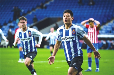 本报综合消息 2020-2021赛季西班牙足球乙级联赛6日展开第17轮较量。中国球员武磊效力的西班牙人队2:0主场击败希洪竞技,目前暂居西乙积分榜首位。