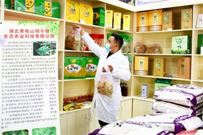 通城县塘湖镇望湖、大埚、雷吼3个村位于黄袍山上,土壤含硒量高,村民种植近万亩富硒水稻,当地加工大户金峰利用冬闲加工饼折,通过线上线下销往全国各地,助民增收。