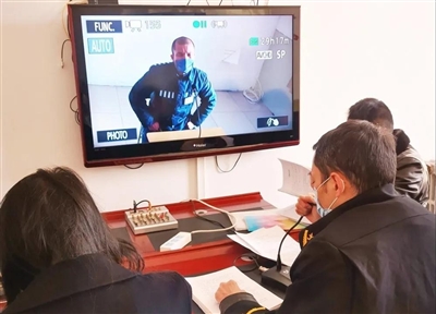 12月11日,经过十几个小时的行程颠簸,承办法官陈武一行人赶到河北省张家口监狱。在征得监狱方及被告同意后,在监狱远程提讯室里搭建起了简易的审判庭。