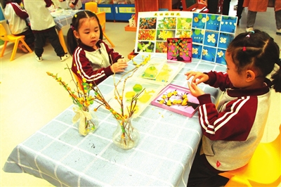 在市直属机关幼儿园每一间教室里,映入眼帘的每一处都是风景。教室里将咸宁的民风民俗、家乡特产、文化遗产等融入到幼儿园的环境创设中,“星星竹海”“嫦娥大剧场”“香城书屋”“香城特产店”“桂香博览馆”“香城泉都”等地域特色融合在一起,在这里,你能沐温泉,游竹海,品赤壁,赏桂花……这里就是一个浓缩版的小咸宁。
