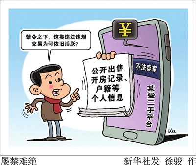 新华网消息 “提供任何信息查询服务”“可查任何信息”……记者近日调查发现,在闲鱼、转转等二手交易平台上,有一些声称可以提供个人信息查询服务的卖家;户籍、房产、开房记录等隐私信息,有的几百元就能买到。