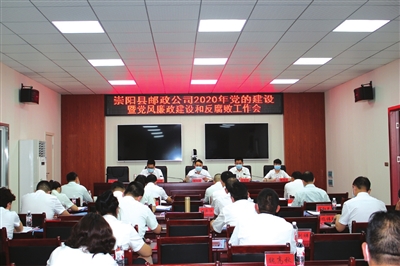 政治建设“铸魂”。崇阳分公司以习近平新时代中国特色社会主义思想为指导,准确把握新时代党的建设总要求,坚持全面从严治党统领全局,推动党建工作再上新台阶。4月18日,召开党的建设暨党风廉政建设和反腐败工作会,与各部门、各支局(所)签订责任书,制定了责任目标,分解了责任任务。班子成员建立党建联系点,定期到联系点调研指导工作,帮助解决问题,督导各支部主题党日活动的召开。