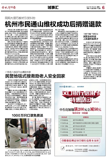 本报讯(记者 王奇峰 通讯员 徐红玲)“你们帮我追回的退款,我会全部捐给通山县红十字会,这也是我感谢贵所的一份心意……”近日,远在杭州的张先生得知之前订购大理石的部分订金被通山县市场监管局东城市场监管所追回后,向该所所长张乐说道。