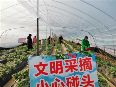 “往年春节前后采摘价为40-45元一斤,今年只需要35元。”咸安区汀泗草莓采摘园负责人介绍,近期基地的“红颜”草莓一天的产量为六七十斤,刚成熟就被周边游客采摘一空,春节后随着气温快速回升,一天的产量可以达到200斤,届时价格还可能继续下降。