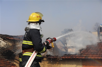 民警当机立断,立即组织人员用消防车接管放水灭火,防止火势进一步蔓延扩大,并疏散围观村民。经过一个多小时的奋力扑救,大火终于被扑灭。