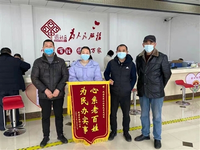 本报讯(记者王奇峰 通讯员袁佳丽 姚远)1月28日一大早,咸安区浮山街道办事处青龙社区迎来3位金属回收公司宿舍小区的“老熟人”。社区一开门,他们就迫不及待将“心系老百姓,为民办实事”的锦旗送到社区工作者手中,感谢他们解决了困扰居民多时的化粪池问题。
