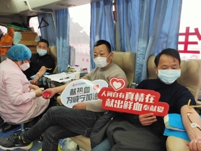 受疫情等因素影响,咸宁市中心血库血液库存不足。2月2日,咸安区向阳湖镇组织党员干部参加无偿献血公益活动,周边部分热心群众也闻讯赶来献爱心。当天,23名干部群众累计献血量达7200毫升,用热血为生命助力。 (记者王奇峰通讯员刘洁章薇)