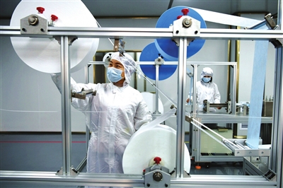 2月7日,通城县高新技术开发区内艾舒宝公司员工加班加点生产口罩赶订单。