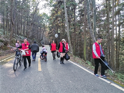2月15日,正月初四,当大家还陶醉在休闲度假、旅游观光、走亲访友的节日气氛中时,潜山蜿蜒的山道上,一群穿红马甲的志愿者结队而行。他们左手提黑袋,右手持长夹,一停一行间,带走了山林间的一个个垃圾。