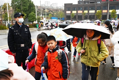 市公安局内保支队支队长金汉才介绍,2019年以来,市公安局深入贯彻上级指示精神,把校园安全工作摆在平安建设突出位置,大力加强全市中小学、幼儿园安全防范和疫情防控工作,严格落实“护校岗”制度,筑牢校园安全屏障。在此基础上,创新性打造市区各校园“亲情护校队”——以家庭成员中有在校学生的机关民辅警为队员主体,合理调配组合,构建校园重点时段新防线。目前,由62名机关民辅警报名参加组建的13个亲情护校队小组队员总会按时出现在各学校值守区域,为学生进出校园站岗护航。