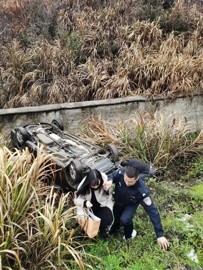 据王先生介绍,当日上午11时许,天雨路滑,他驾车回老家杨林村,在杨林村亭子坳地段,发现一辆小车下坡时,突然失控,向右边山脚下滚去,四脚朝天翻仰在山沟里。