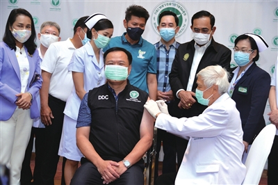 当天上午,泰国疫情最严重的沙没沙空府也开始为高风险人群进行疫苗接种。3月1日起,13个疫情较严重地区的医护人员等高危人群将陆续接种疫苗。