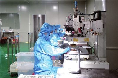 3月1日,通山经济开发区,卧飞电子有限公司,工人们在流水线上忙碌。据了解,该项目总投资6000万元,主要深加工光学电子玻璃 、液晶模组组装、电池模组组装等。公司于去年年底投产,目前订单多,产销旺,预计年产值可达5000万元,解决用工200人。