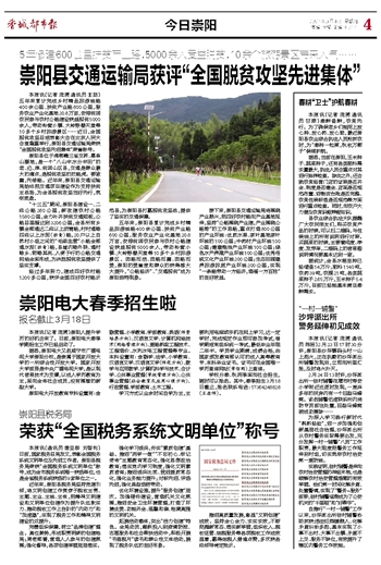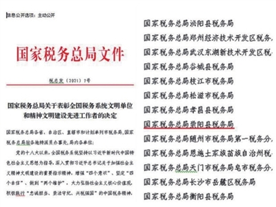 本报讯(通讯员 唐亚群 刘智利)日前,国家税务总局发文,表彰全国税务系统文明单位及先进工作者。崇阳县税务局荣获“全国税务系统文明单位”称号,成为全市税务系统唯一获选单位,也是全省税务系统获选的9家单位之一。
