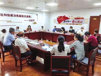 这群“巾帼”调解员中有多名调解员非法律专业出身,为了熟练掌握现代化调解技能,她们经常不顾白天工作的劳累,利用下班后和周末休息时间进行自学。在她们的组织下,中心坚持周例会制度,常态化举办调解讲堂,组织法庭旁听,案件研讨交流等。中心每周组织一次专题学习,并结合案件进行讨论,她们的业务能力显著提升,这也有效提升了调解效率和效果。