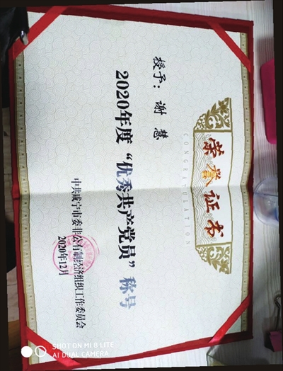 据悉,当2020年抗疫战斗即将打响时,谢慧本可以在家休息,等待抗疫的最后胜利。然而,她却怀着美好的希冀,希望到抗疫战场去播洒青春,去实现自己的另一面人生价值,去把美好的年华献给这场特殊的战斗,去为2020年初那个美丽的春天增添一抹动人的风景。但是,就在她心怀美好梦想时,五金机电大市场参加防控的战斗“序列”里没有她的名字。“那一刻,谢慧急了。她问我们,为什么没有她;她问相关领导,是不是她不够优秀……”当天,记者采访时,该公司一位员工描述起谢慧当时急切的情形。“不是,很不错,只是考虑到你是女同志,怕你吃不了这个苦”。相关领导给出了解释。“不,我能吃苦、我能吃苦……”谢慧激动而执拗地回答说。