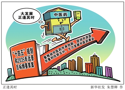 中医药是中华文明的瑰宝,是5000多年文明的结晶,传承发展中医药是件大事。“十四五”规划和2035年远景目标纲要草案提出,要推动中医药传承创新,坚持中西医并重和优势互补,大力发展中医药事业。打造20个左右国家中医药传承创新中心,20个左右中西医协同旗舰医院,20个左右中医疫病防治基地,100个左右中医特色重点医院,形成一批中医优势专科。在国家的引领和大力支持下,中医药大发展正逢其时。 (据新华网)