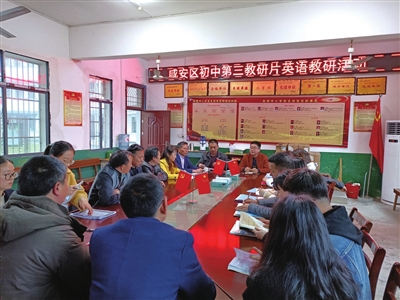 3月18日,春暖花开,蜂飞蝶舞。由咸安区教育局教研室牵头,以“精心研磨,致力创新”为主题的区第三教研片英语教研活动和各科教研员推门听课指导教学工作,在咸安区高桥中小学同步进行。来自咸安区教育局教研室、咸安区实验学校、贺胜中小学、鲁迅学校、双溪中学、官埠中学的相关领导与教师参加了教研活动。