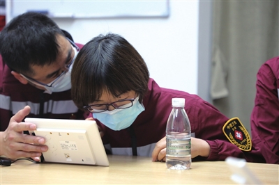 3月12日上午,在云南省第一人民医院急诊科小会议室内,该院援咸医疗队员围坐在一起,开开心心看了本报记者带去的老李录制的视频。