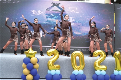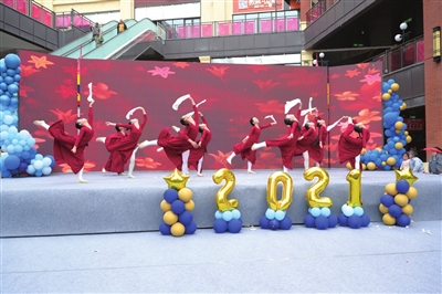 台上的演出精彩连连,台下的小选手们也是忙得不亦乐乎。汉地尚街特意在现场搭建了气球造型美陈供来宾拍摄,小朋友们摆着各种Pose,与相伴而来的家人们一起,为这次比赛留下美好的回忆。还未上台的小选手们,有的让家长和老师帮着整理着装,有的口中默念着节拍,在外围的空地处反复练习即将上台表演的各种高难度动作。