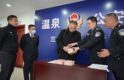 本报讯(记者 毛亚轩 通讯员 朱莎莎 卢楠)“感谢你们帮我追回了被骗的血汗钱!”22日下午,市公安局温泉分局三号桥派出所内,3名受害人在咸安区检察院检察官的见证下,欣喜地从办案民警手中领回37万余元现金,并送上锦旗表达诚挚的谢意。