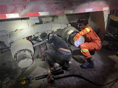 本报讯(记者陈志茹 通讯员朱燕林 罗聪)近日,崇阳县一名修车师傅在修车时,因千斤顶突然故障损坏,导致大货车落下砸中自己。危急之际,12名消防员及时赶到,仅用5分钟,就将被困的修车师傅救了出来。