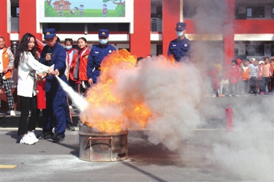 随后,消防员们还现场展示了消防车上水枪的使用全过程,该校一位男教师在模拟穿上消防服扛水枪抢险后,感叹地说:“最大的感受就两个字‘累'和‘重',这让我深刻感觉到消防工作的不易,因此平时就应着重注意安全,避免火灾发生。”